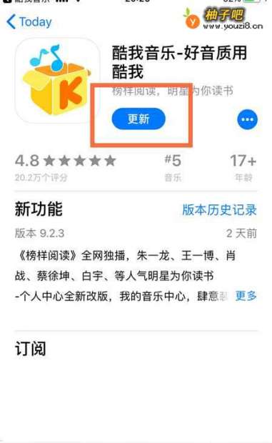 6然后就进到了酷我音乐的更新页面,点击更新。