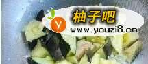 3锅中放油,油烧至6成时放入茄子炸至变软,微微发黄捞出沥油