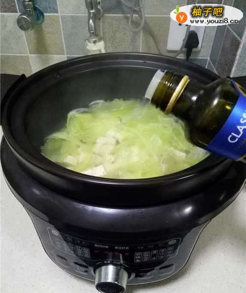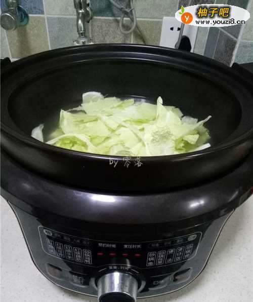 5放入白菜,调入适量盐;启动“再加热”功能,再煮2分钟;