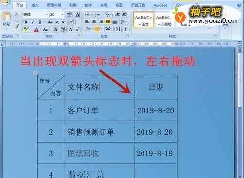 3打开文件,将鼠标放于列的分界线上,当出现双箭头标志时,按下鼠标,左右拖动,放至合适位置。