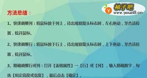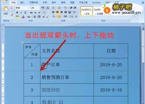 2、快速调整行:将鼠标放于行上,待出现双箭头标志时,上下拖动,至合适位置,松开鼠标。