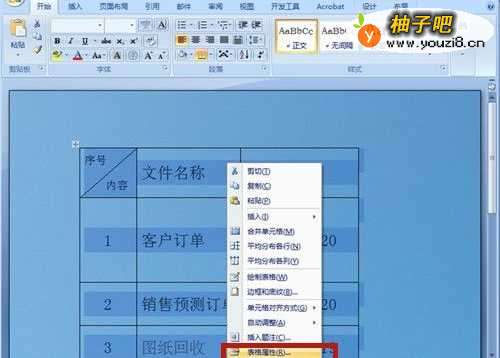7选择表格,右南鼠标,选择【表格属性】。