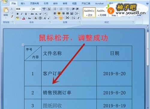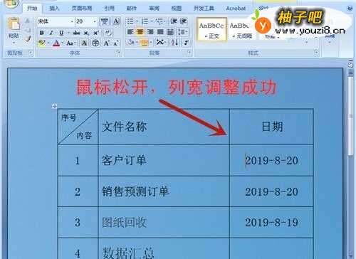 2放下鼠标,列的宽度调整成功。