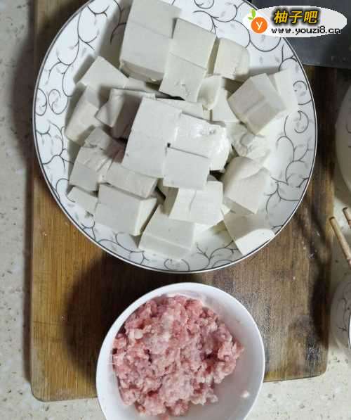 1、准备好合适的食材,将豆腐切成块状。2、起锅烧油,准备烹制。3、油热后,加入姜末和蒜末进行爆香,再加入豆瓣酱。4、炒匀酱料后,加入猪肉末。5、进行翻炒,注意将肉炒散。6、加入适量的水,再放入豆腐。7、蒸煮一段时间,加入勾兑好的芡粉水。8、加入葱、盐等调料。9、待豆腐熟后出锅即可。
