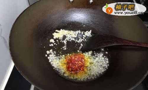 3油热后,加入姜末和蒜末进行爆香,再加入豆瓣酱。