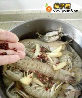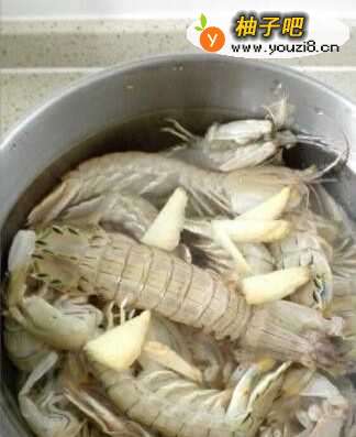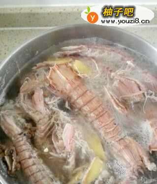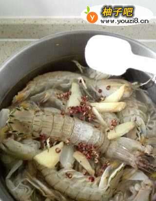 2洗净的皮皮虾加入清水、姜片,入锅开火