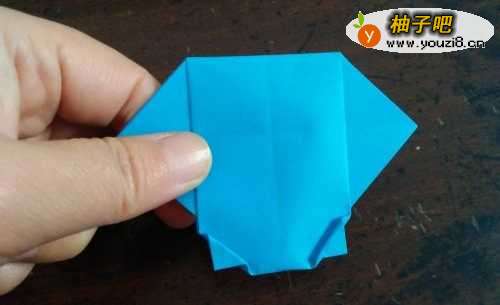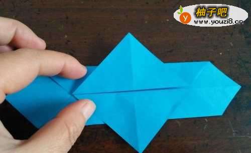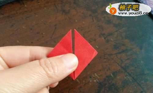 2上边的同样操作,然后把两侧的边斜着向外折,顺势把角折好,如图三。