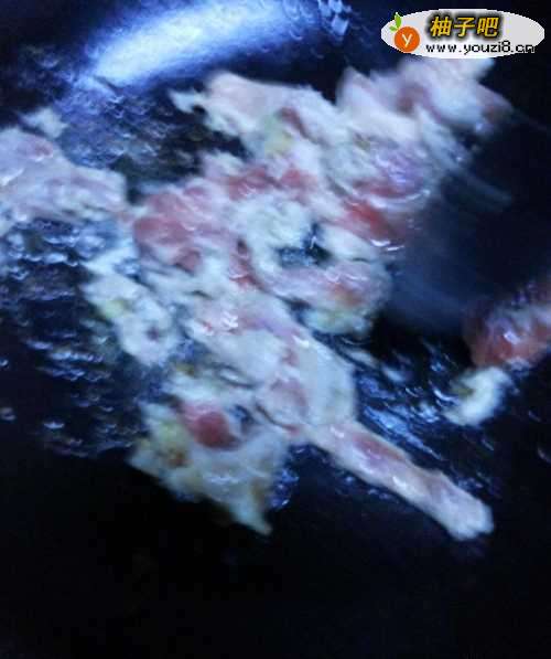 4葱丝炝锅,放入牛肉片滑炒。