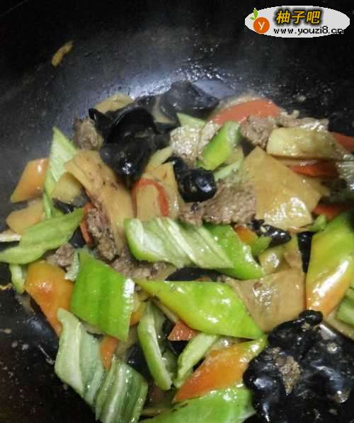 7收汁后,放上青椒。