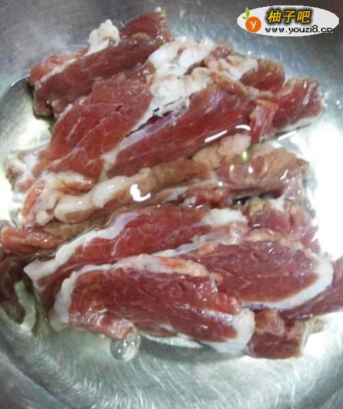 将牛肉切成薄片。