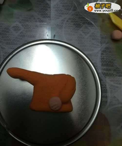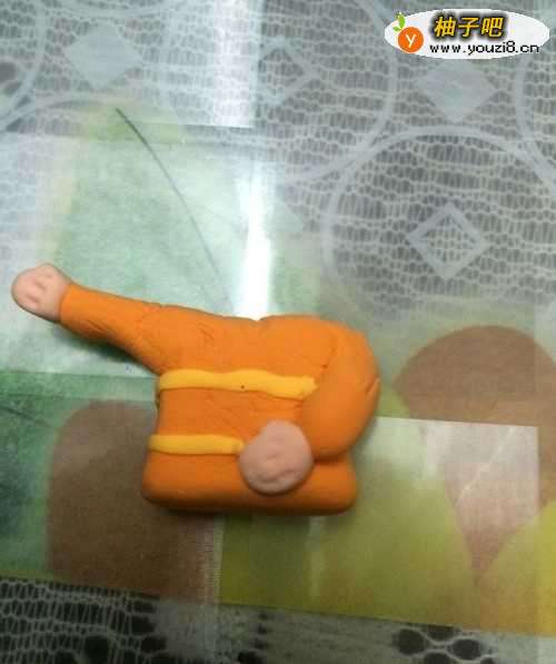 5然后就是男孩的身体,用一块橘色的粘土捏出身体和胳膊。胳膊不是粘上的,是一块整的粘土。也可以捏好粘上。