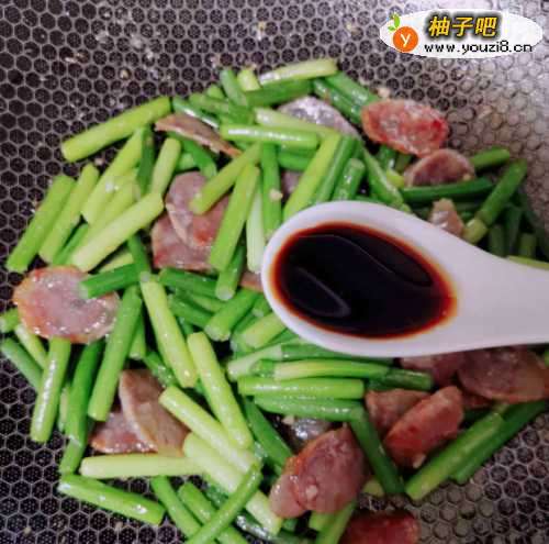 1、首先,我们将蒜苔用清水洗净,然后切段,将香肠切片;2、这时候,往锅里注入适量清水煮开,然后倒入蒜苔焯2分钟捞出备用3、接下来,起锅热油,放入香肠小火煎至透明,然后捞出备用;4、这时候,将原锅倒入食用油,加入蒜蓉小火爆香;5、在我们呢倒入蒜苔翻炒片刻,可以放适量的盐翻炒;6、然后,将香肠回锅,小火翻炒均匀;7、最后,再加入适量生抽,炒匀出锅就OK了。