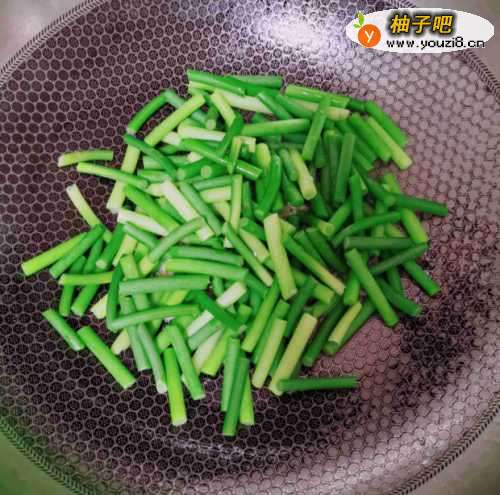 5在我们呢倒入蒜苔翻炒片刻,可以放适量的盐翻炒;