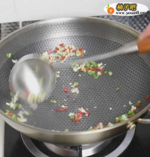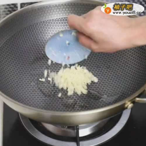 6之后锅中留适当的油,放入蒜末。