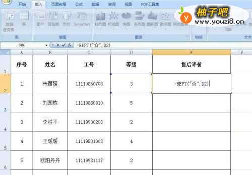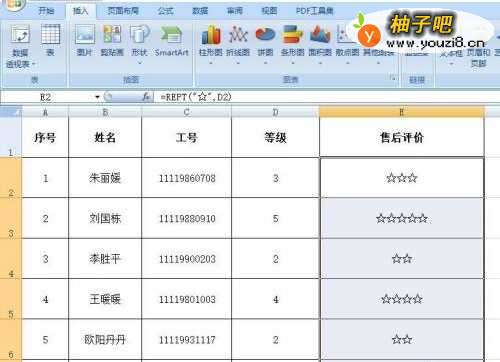 如何在excel中将等级数字转化为图形