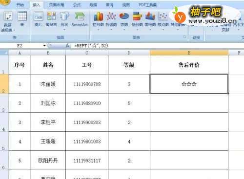 为了将表格更美观一些,会将一些数字转化为图形来抓人眼球,下面以售后评价为例,如何将等级评价转化为图形