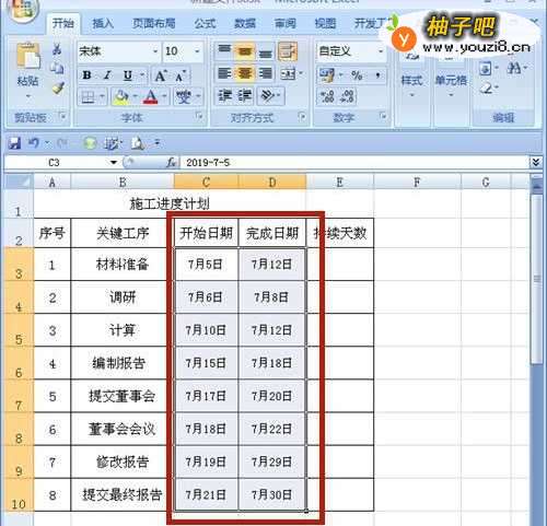 3、列出进度的开始日期、完成日期。