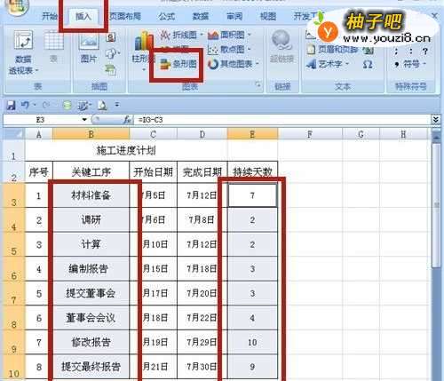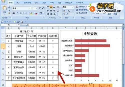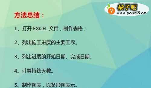 在工作中,我们经常需要编制施工进度计划,以控制进度,如何编制呢?我们可用EXCEL工作表,逐项罗列出施工进度中的工序,列出开始日期、完工日期,最后制作成图表,非常清晰、明了!