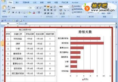 7鼠标松开后,每个施工工序的持续天数以图表清晰地表示!