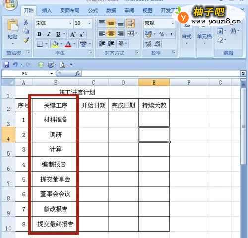 打开EXCEL文件,列出施工进度的主要工序。