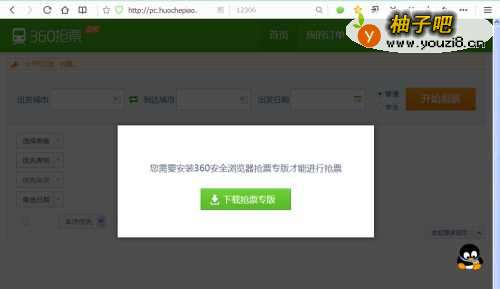 2点击360抢票,进入后,提示需要安装360抢票专版。