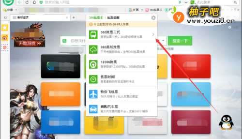 6然后打开360安全浏览器7.1。点击上方的“360抢票王”。
