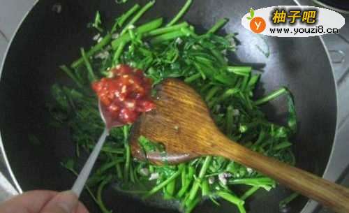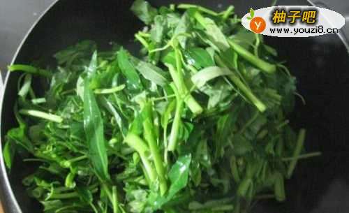4放入空心菜大火快炒