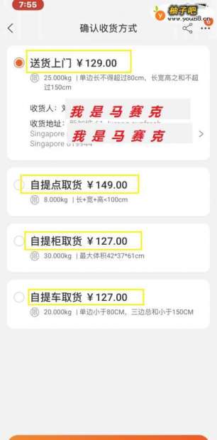 7要一同发往国外的全部选中之后,点击【运费结算】之后,进入【确认收货方式】页面,个人普通购物就选第一个【送货上门】即可。注意下方显示的地址。
