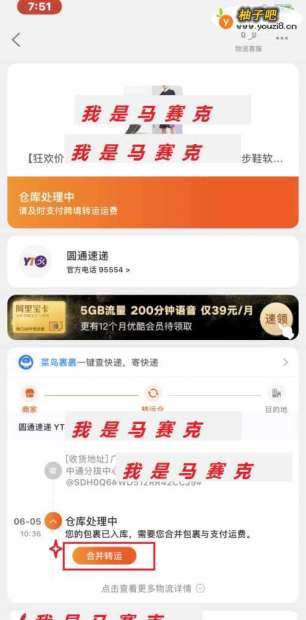 点击任意一条订单信息,进行【查看物流】之后点击【合并转运】。