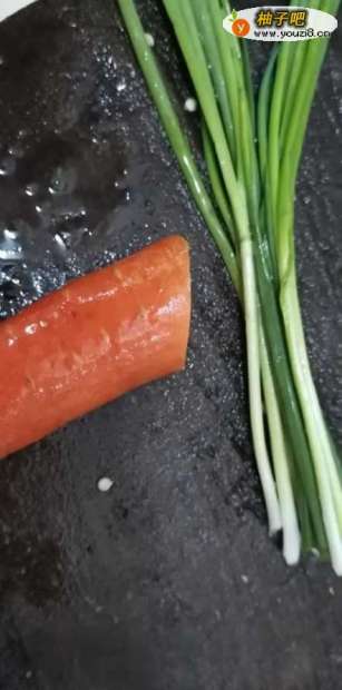 首先 ,我们将所需要的材料准备好,如下图:3个鸡蛋,一小把葱花、半截胡萝卜(量可以根据所需来添加)。