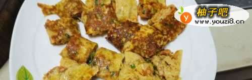 7熟了之后,把过关掉冷却2分钟左右,然后从锅的一边慢慢卷起来成一条形状,再用刀切成大小均匀的块状即可。鸡蛋卷就做好了,颜色有点点焦,但不影响口味哦,味道还是不错的。
