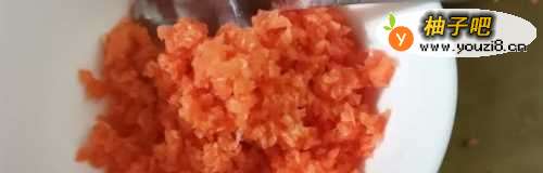 3将胡萝卜用刀或者打碎机打碎(这里用打碎机很快就得了),再把胡萝卜馅倒入碗里,将葱花切细碎、姜末一起放在胡萝卜馅碗里备用,撒入一点点胡椒粉调味。