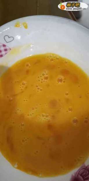 2先将鸡蛋依次打入大碗中,然后用筷子不断搅拌均匀,滴入几滴白醋(让蛋液更鲜嫩)。
