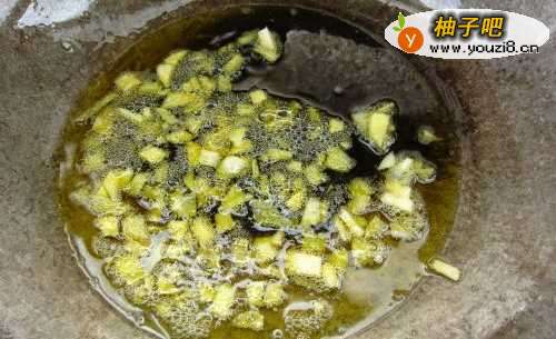 3把油烧好后放入生姜大蒜煸香.