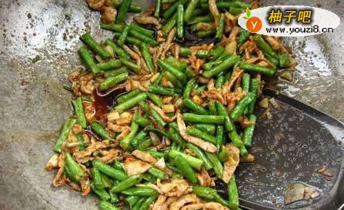 6最后放点鸡精把豇豆与瘦肉丝混炒均匀后就可以出锅了.