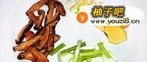 6将香菇挤干水分切片,葱切段,姜切片,蒜切末;