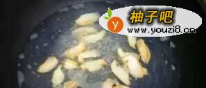4锅中放少量水,水烧开后将鲍鱼片放进去,入锅即起,以防变老身;