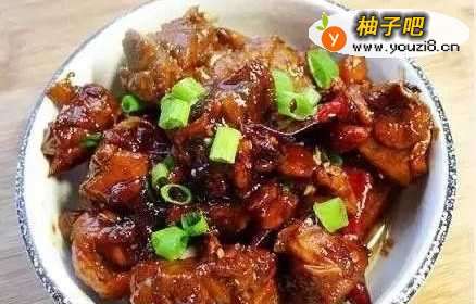 2.加入干辣椒略炒出味,滤掉煸出的鸭油,加一定比例的酱油、食醋、白糖和料酒,随后加温水,沸腾后盖上锅盖,转小火焖烧;