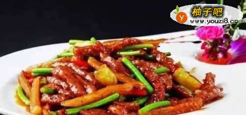 3.下油适量,趁油未热放入牛肉旺火翻炒,烧至六成熟时,把火关小,加盖焖至熟透。这样炒出的牛肉既鲜美又嫩滑。