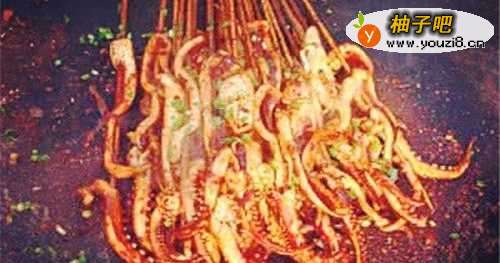 2铁板鱿鱼,算是路边摊中高大上的食物了,小贩们翻动着鱿鱼,美味的声音吱吱作响,然后配上好吃的酱料,让人难以抗拒。