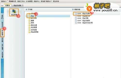 在主控台界面,点击【资金管理】→【管理】→【】→【日记账】。