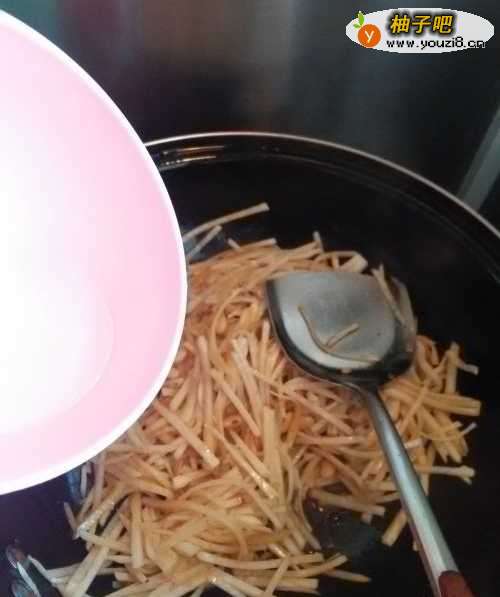 9再往锅中加入少许清水,这样旱萝卜炒出来更软,更好吃。