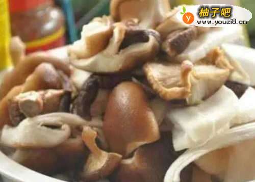 3将香菇、杏鲍菇撕块切片