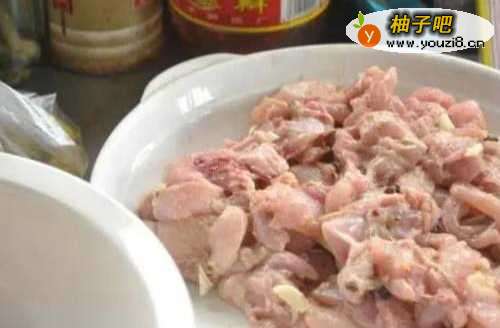 2兔肉片中放入盐、香料、料酒和大量淀粉拌匀静置