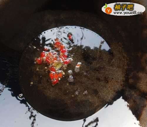 3如图,锅内加入适量色拉油,烧至八成热时放入切好的干红椒。
