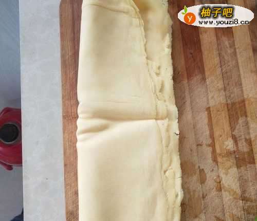2如图,取来一块新鲜豆皮,用清水冲一下,然后折叠好切成细长的丝状。
