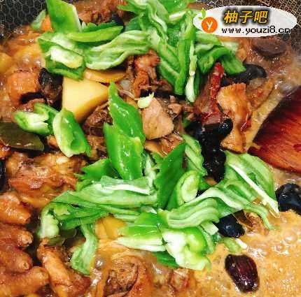 5等到锅中水快煮干时,再加入青椒翻炒一会即可出锅