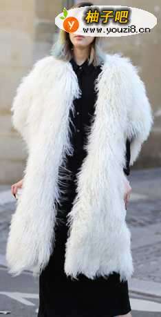 5这款白色长皮草搭配黑色连衣裙,脚踩一双白色板鞋,是不是又显年轻又显贵气?