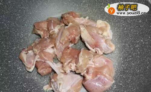 2放少量油,鸡肉先煎两面金黄,捞起备用。
