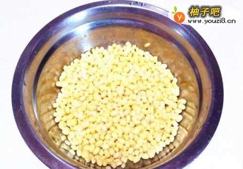 挑选颗粒饱满的绿豆500克,泡在水中一晚上,尽量泡的时间长一些,方便去皮。